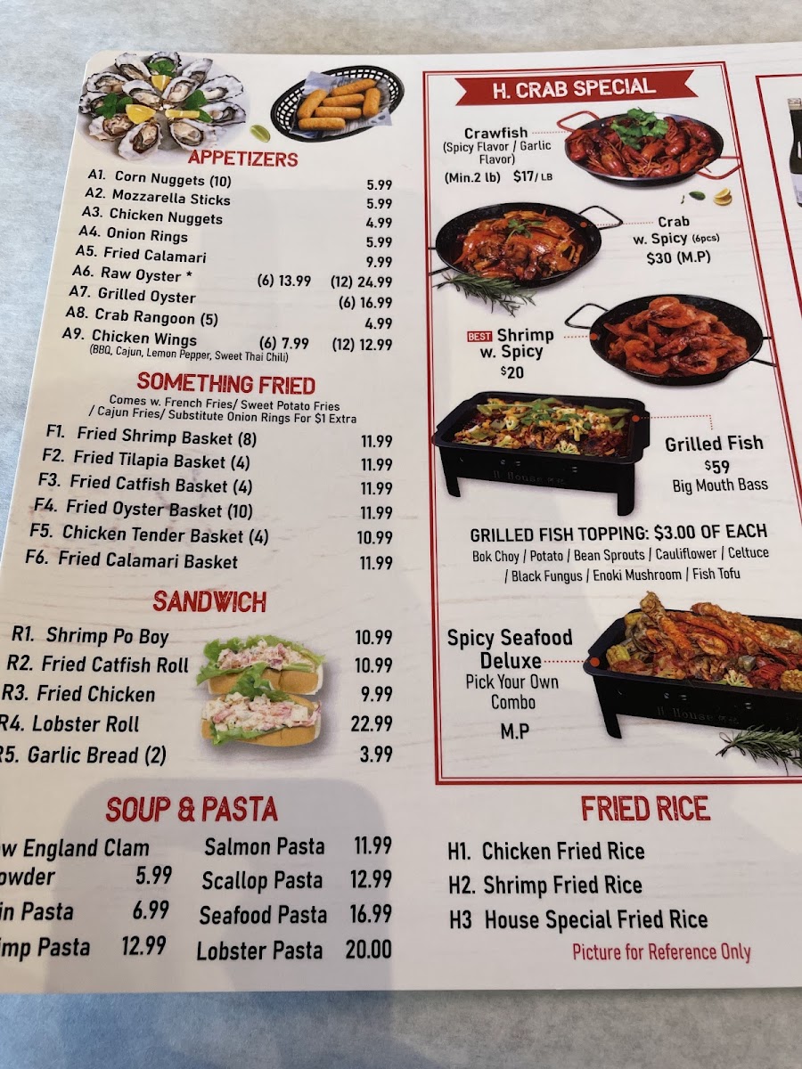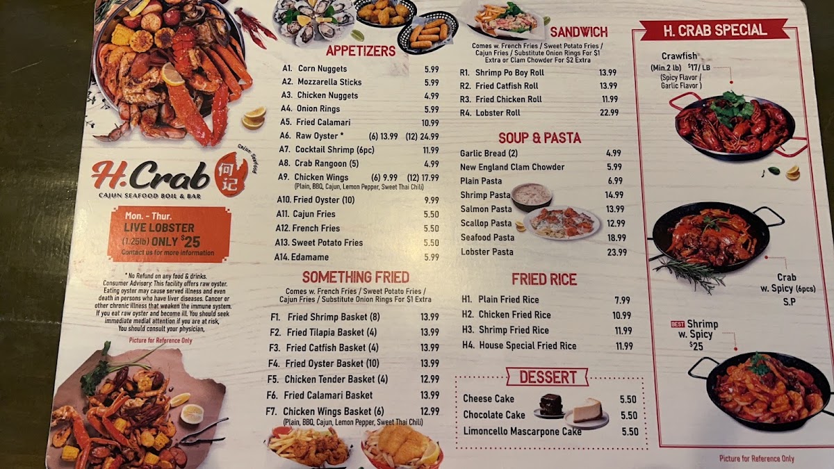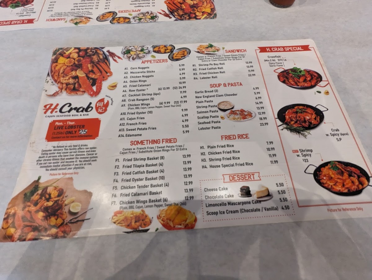 Whether you're dining in or ordering for takeout, the generous portions and friendly atmosphere at H Crab promise an unforgettable culinary journey. Experience the finest seafood and create cherished memories with every visit!
