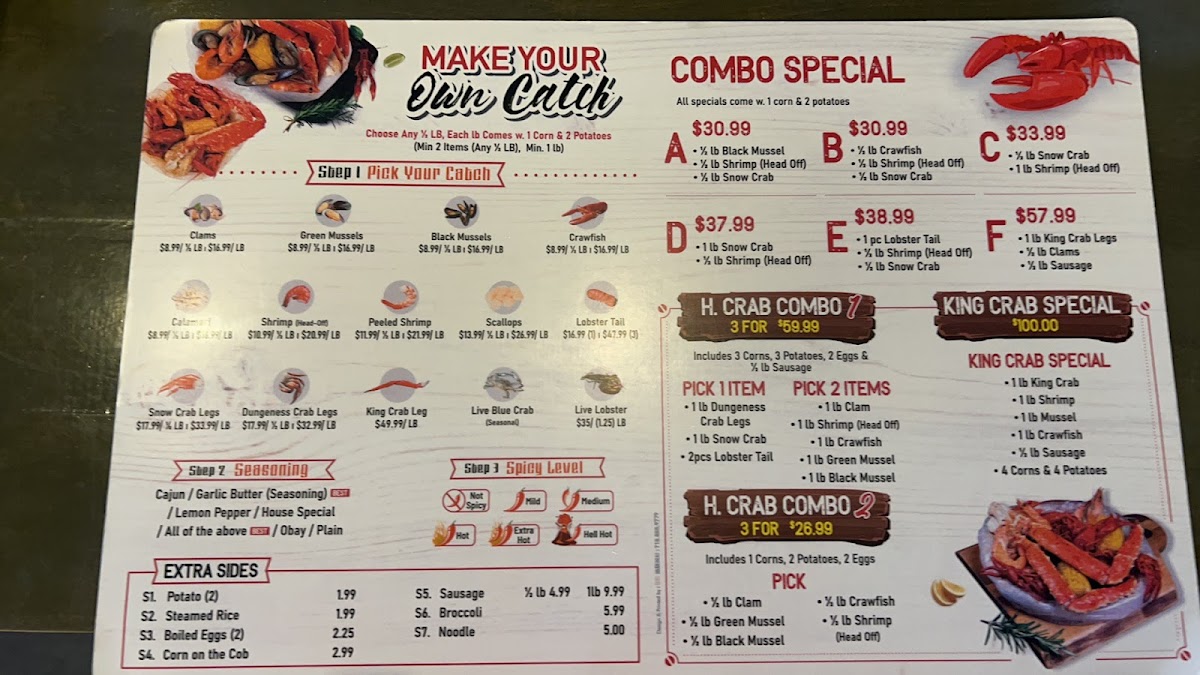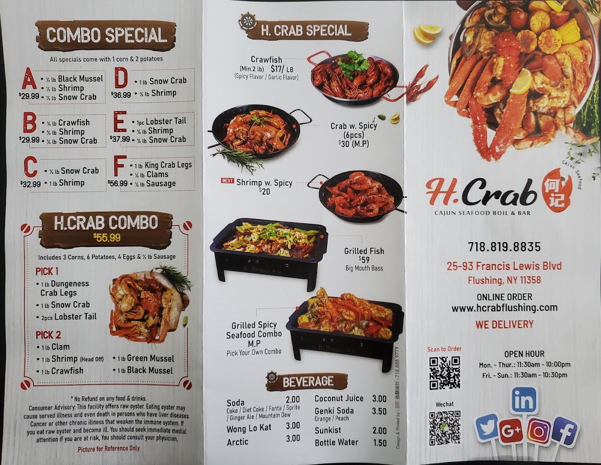 Welcome to H Crab, a seafood haven located in Flushing, NY, renowned for its flavorful dishes and warm hospitality. The menu offers a tantalizing selection of steam-cooked seafood, where every bite is a burst of flavor, particularly highlighted in the Cajun, lemon pepper, and garlic butter sauce that customers rave about.